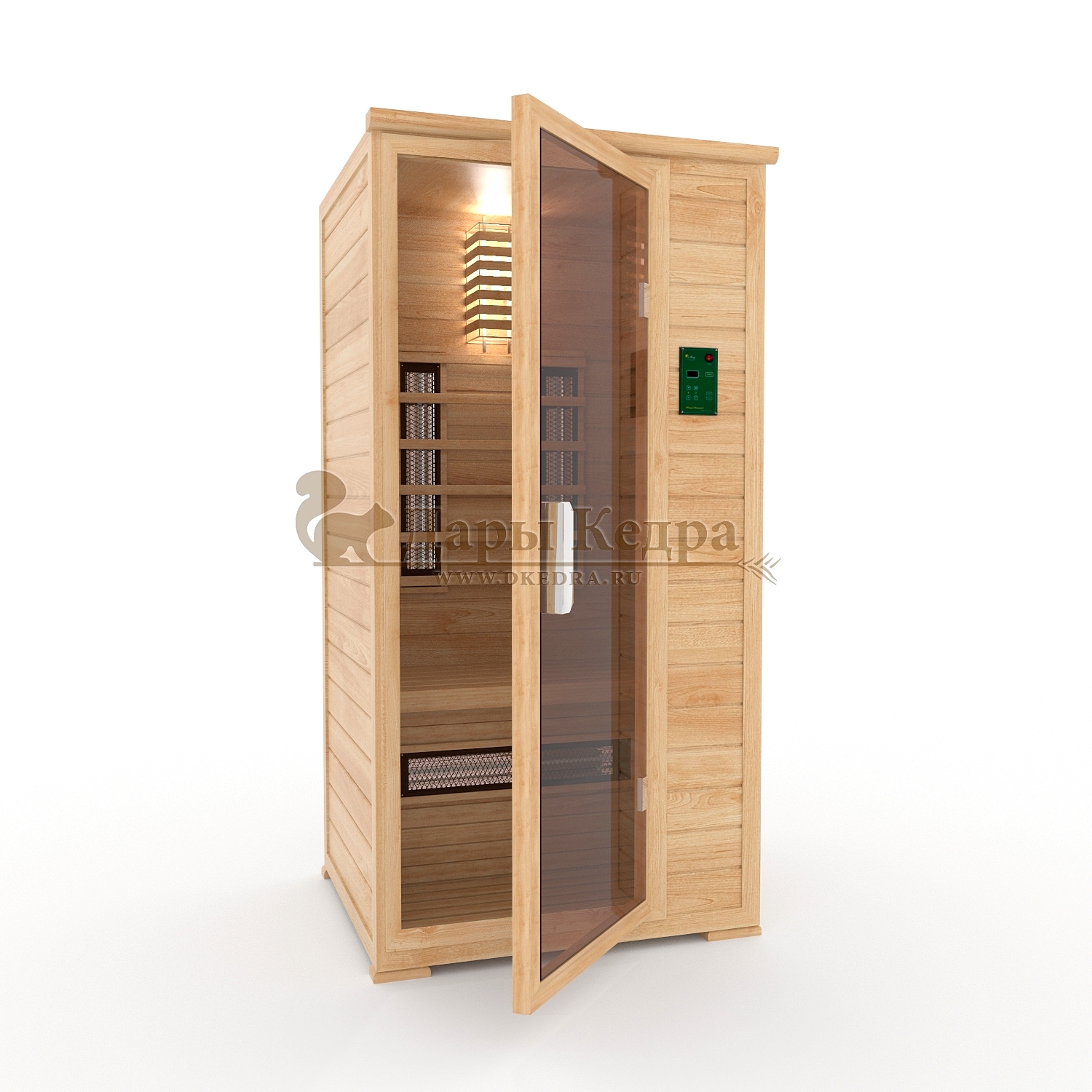 Одноместная инфракрасная сауна кабина из кедра с керамическими нагревателями Это специально оборудованная кедровая кабина для прогрева тела человека сухим теплом. Воздух в таких парных не нагревается. Инфракрасные лучи воздействуют на тело, равномерно прогревая мышцы, суставы и органы. Керамические излучатели похожи на лампы, имеют высокую температуру нагрева, поэтому защищены противоожоговыми решетками. Тело человека в таких саунах нагревается интенсивнее. Работает кабина за счет электричества. Компактная одноместная инфракрасная сауна с керамическими излучателями подойдет как для домашнего использования, так и для коммерции. Обращаем Ваше внимание, что в стандартную комплектацию входит трапик для ног, но вы можете его заменить на цельный пол совершенно бесплатно! Целебная древесина кедра и инфракрасные лучи благотворно влияют на организм человека в целом. При регулярном использовании инфракрасной сауны укрепляется иммунитет, улучшается кровообращение и состояние кожи, выводятся токсины.