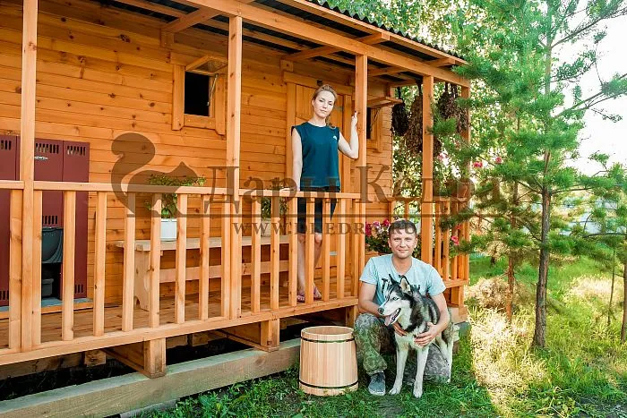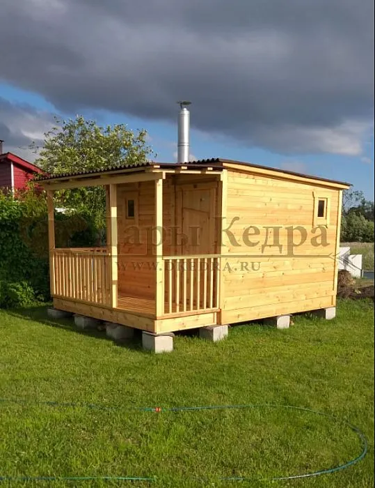 Каркасно-щитовая баня из кедра «Стандарт» с верандой