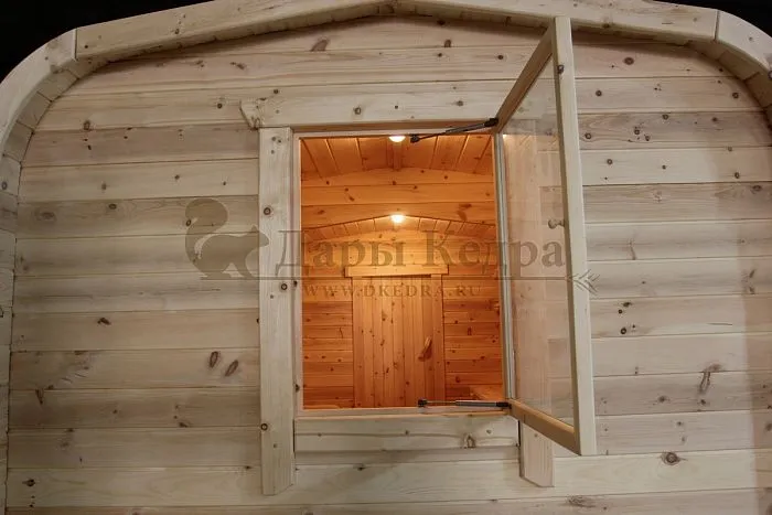 Баня-бочка «Пентагон» с панорамным окном