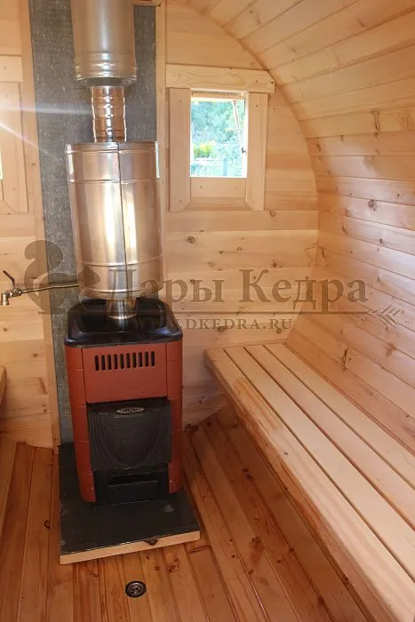 Затем можно приступать к финишным работам: установке планок на козырьке, дверных ручек на необходимой высоте, заглушек, подключению бани к электричеству. Монтаж электропроводки рекомендуем доверить специалисту в этой области.