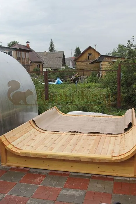 - После сборки дна банной конструкции собрано, его необходимо перевернуть и обработать пропиткой от гниения. Покрытие наносить при t не ниже +5 градусов.