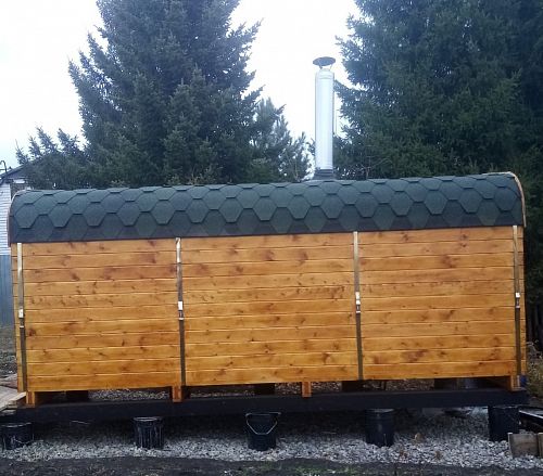Хорошая вместительная баня. Очень красивая получилась, аккуратная. Быстро нагревается, мы довольны, спасибо.